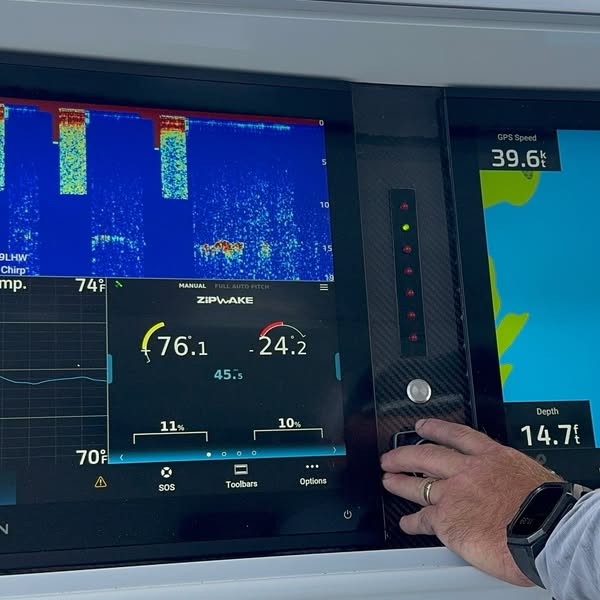 “With 6 people on board and 3/4 fuel and full water. She hit 39 knots in real conditions and weight. At half load, she will do 40 knots. 33.8 knots at 74 Gal an hour for a 50 footer. .456 NMPG. What a machine. Can’t wait to fish her in Brazil and around the world.”